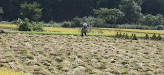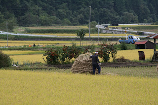 Rice is a big business here in Japan and rightly so. The soil here in Japan is so dark and look so rich compared to American soil. Driving in the countryside you can see Japanese rice farmers working 7 days a week from sun up to sun down. The Japanese have a very serious work ethic and even today many still plant rice by hand. The majority of the fields we have drove by have the rice being planted by hand, although we have seen a couple using a ‘tractor’ of sorts. They also mainly hand gather the rice and manually put it into small or large piles to dry. Here are some pictures I’ve taken during our stay here in Japan.