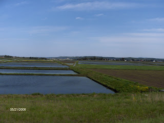 Rice field, notice how they are flooded to grow rice, you can see the rice sticking out of water
