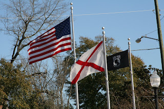 Flags along road in city center