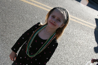 Bea with her beads, can you see the pained expression, she watned to know why it was so hard to get them to throw beads to her