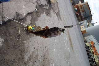 One thing the guys liked to do in Iceland was head down to a local pier in Keflavik and go fishing. They came home with some pretty ugly fish! All they had to do was bait the hook, drop it in the water, and in no time there would be a fish on the end. Here are some pics of their first trip to the pier in May 2004 (Boo was 8)
